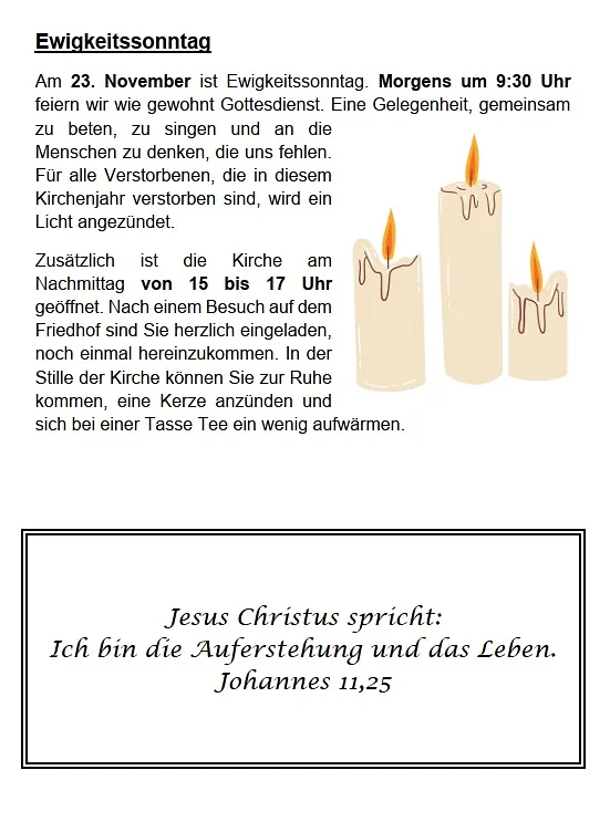 Sonntag, 23.11.2025, 09.30 Uhr Ewigkeitssonntag