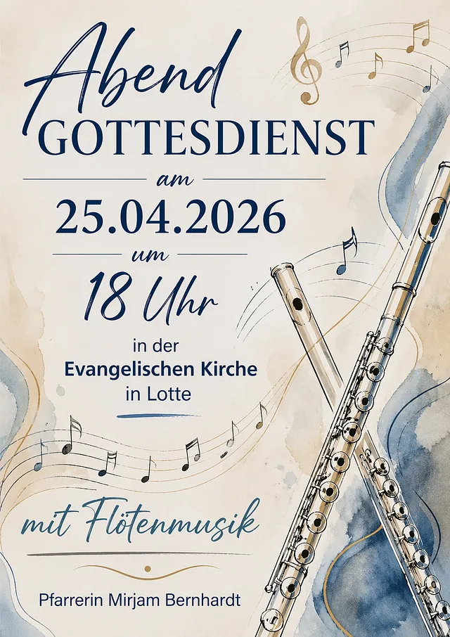 18:00 Uhr Gottesdienst mit Flötenmusik – Pfarrerin Mirjam Bernhardt